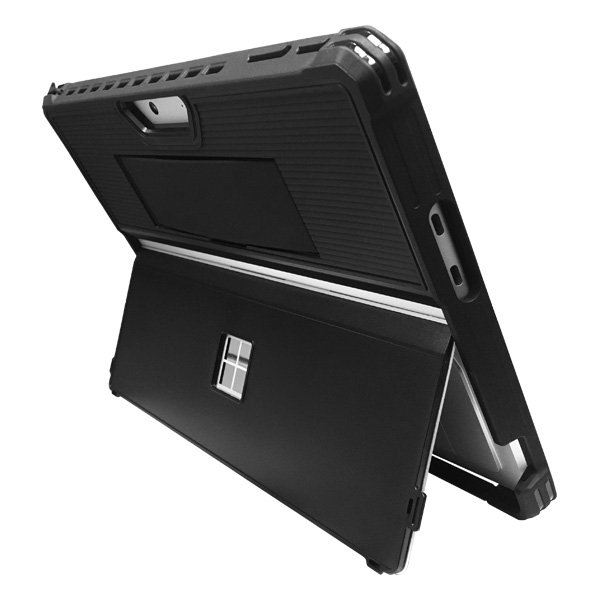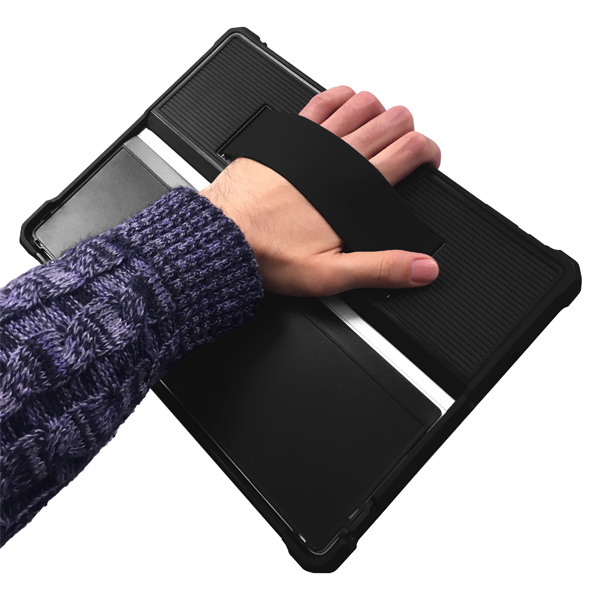 این قاب محافظ برای کاربران حرفه‌ای، دانشجویان و افرادی که سرفیس خود را در محیط‌های کاری سخت استفاده می‌کنند، گزینه‌ای ایده‌آل است. با دستگیره لاستیکی کشسانی، می‌توانید دستگاه را به‌راحتی و با یک دست نگه دارید. همچنین، بند نگهدارنده کیبورد از باز شدن اتفاقی آن جلوگیری می‌کند.